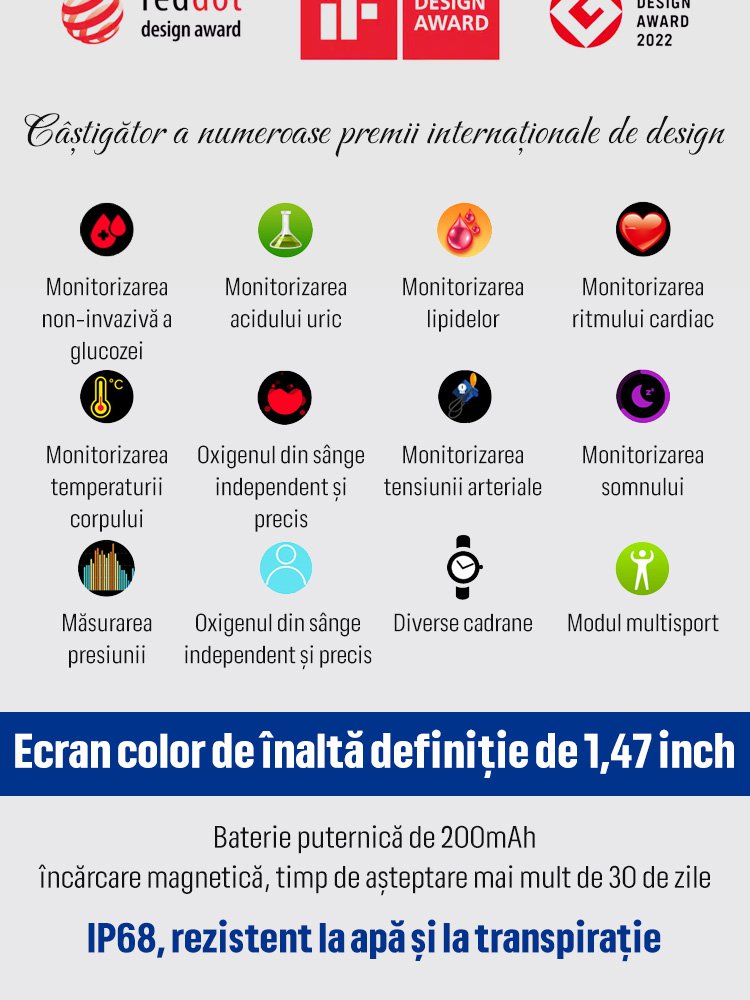 Brățară inteligentă pentru acid uric, lipide sanguine, glucoză, ritm cardiac